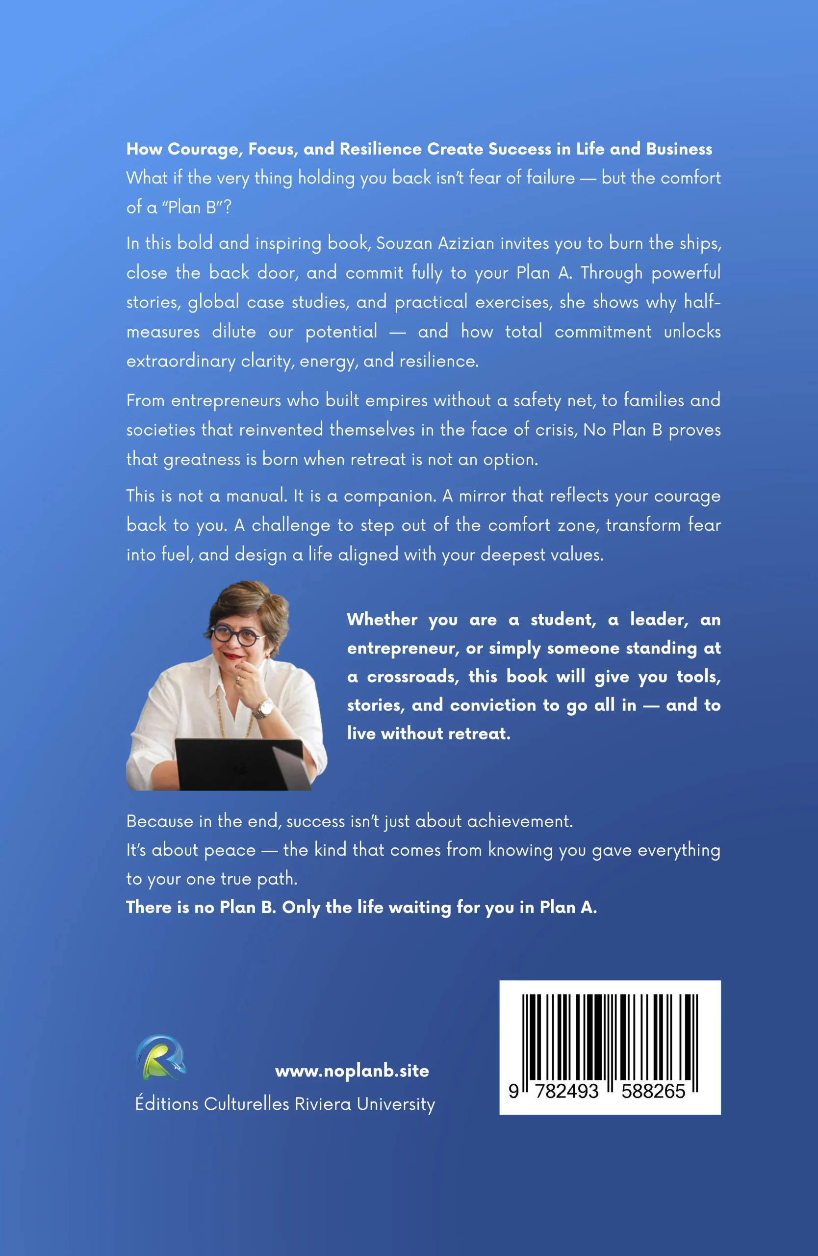 Souzan’s voice is honest, empowering, and deeply human. She writes as a strategist and a storyteller — someone who has built from zero, led international teams, and learned that resilience is not innate but trained. Her message is both personal and universal: “The world doesn’t need more half-lived lives. It needs people fully alive — people who dare the Plan A.”